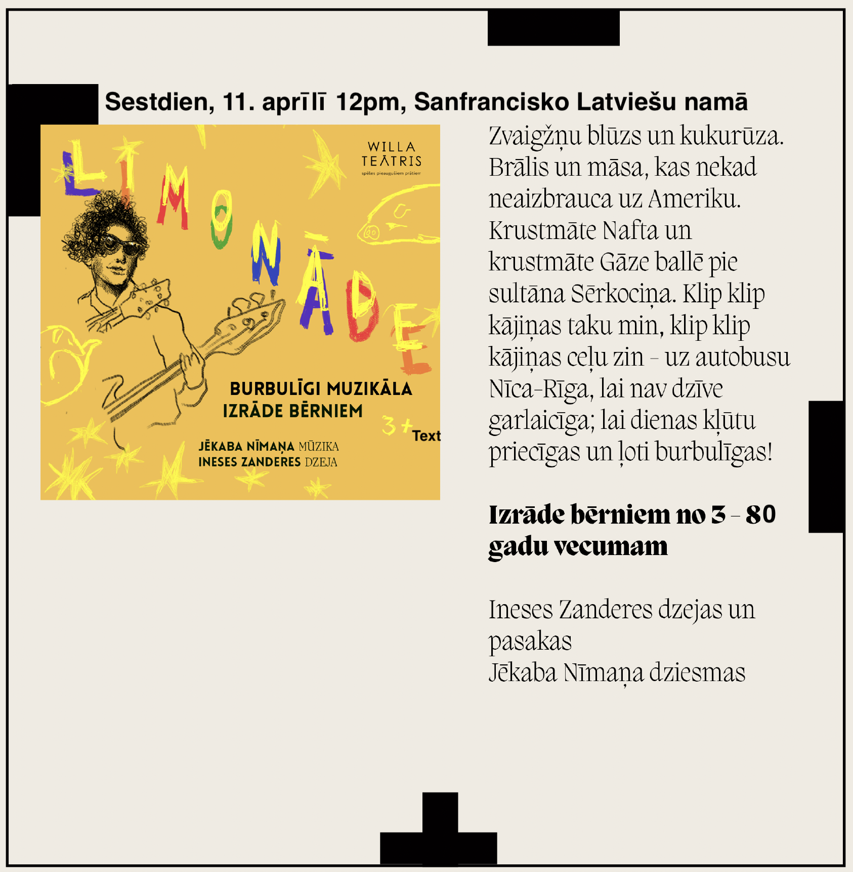 🕛 12:00pm – bērnu izrāde “Limonāde” 🍋