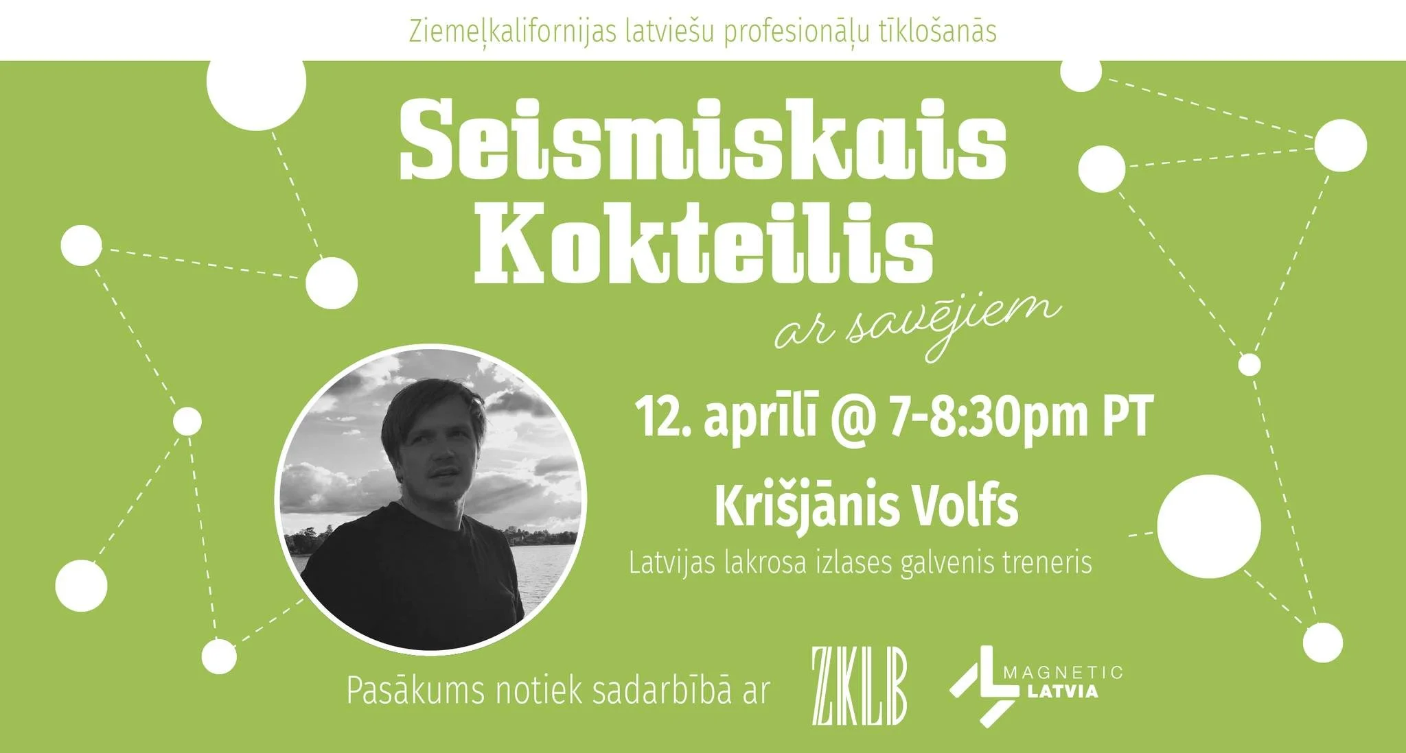 Ziemeļkalifornijas Latviešu biedrība ielūdz Tevi uz virtuālo pasākumu ciklu, kas ļaus gūt jaunas iedvesmas un neformālas kokteiļstundas gaisotnē iepazīt latviešus, kas savu dzīvi saista ar Kaliforniju.