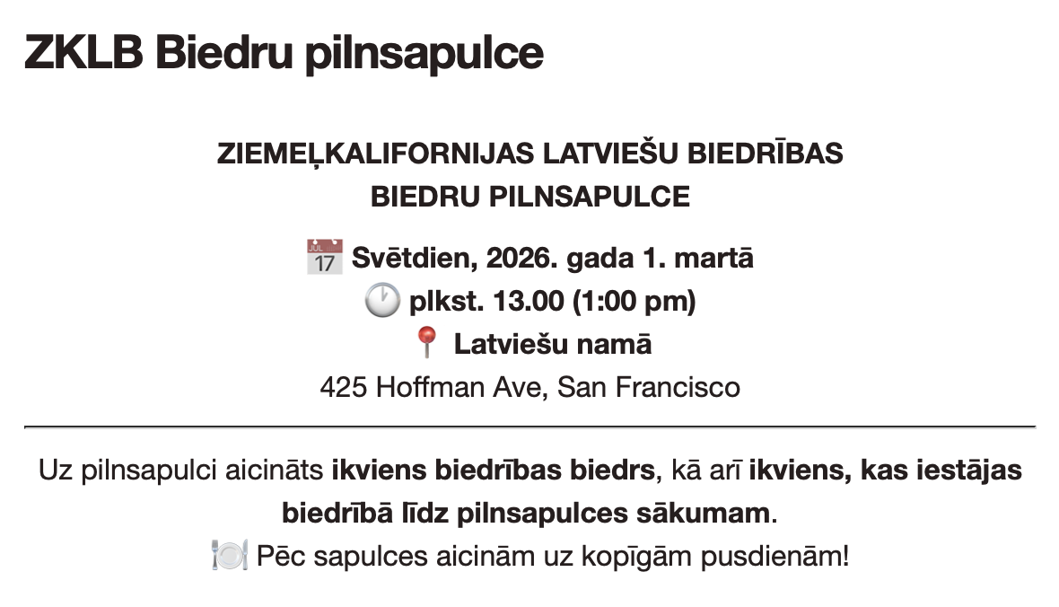 ZKLB Biedru pilnsapulce - 1. martā 1pm